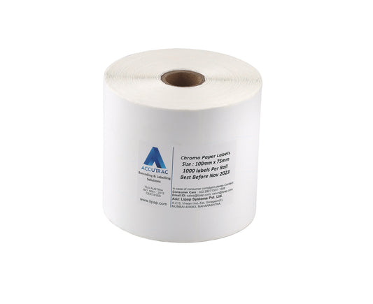 Chromo paper labels-100mm x 75mm-with strong adhesive 1000 labels per roll-1up-1 inch core (Pack of 3-total 3000 stickers) in ACCUTRAC Brand