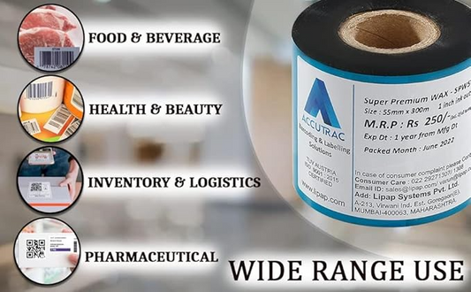 ACCUTRAC 55 X 300 Meters Thermal Transfer Barcode Labels Ribbon Super Premium Wax (Pack of 3)
